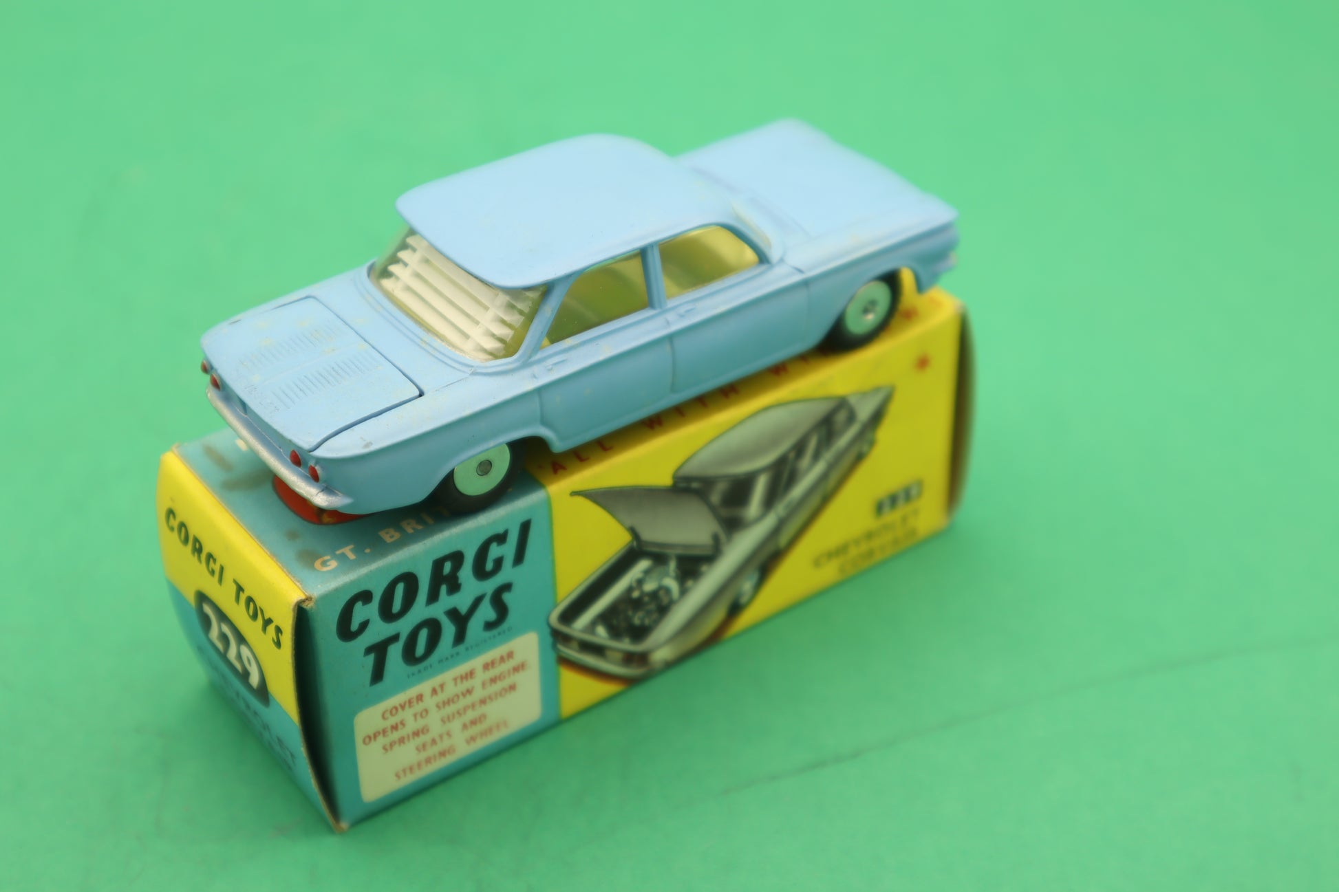 CORGI TOYS - 229- CHEVROLET CORVAIR- GOLDEN MECCANO ENGLAND- SCATOLA ORIGINALE 1/43